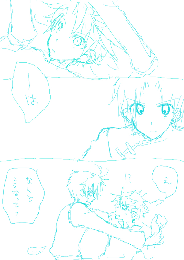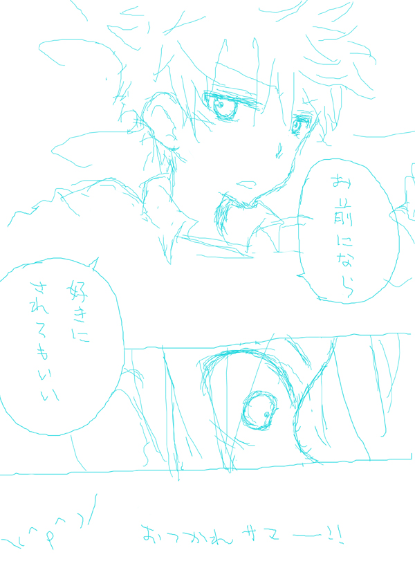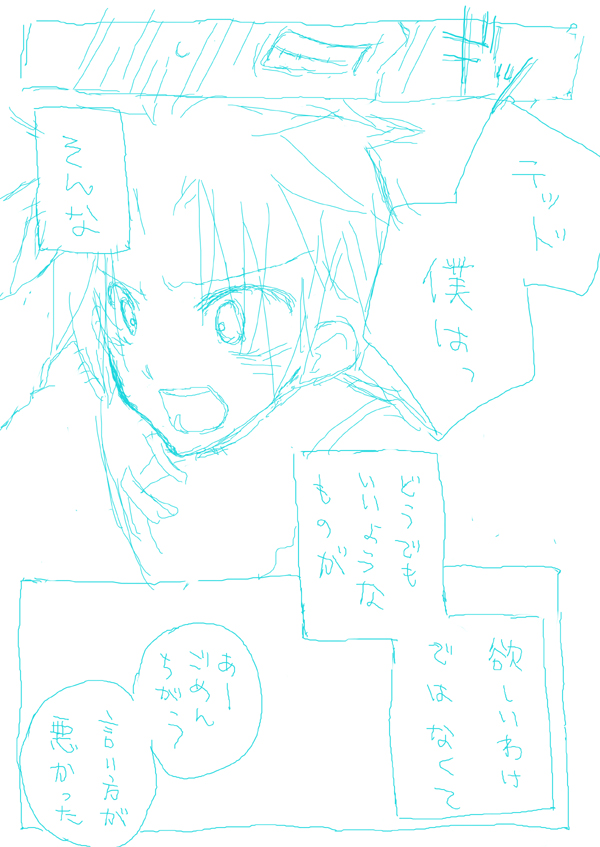 という経緯があって、下絵のつもりの薄い青がそのまま主線。