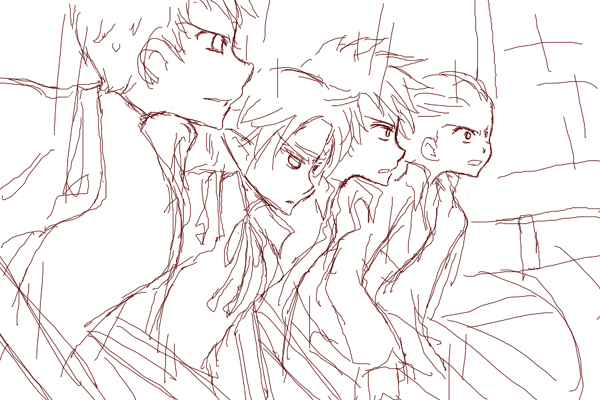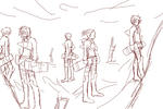 私の右手に宿る一時停止の紋章をフル稼働(上位魔法コマ送り)させたんだけど、へーちょどれかよく解んなくて、解ったとしてもクソ動いてるのなんか描けないから、もう一斉ジャンプっぽいのさせとこうって言う最後のらくがき。色々間違えてる。